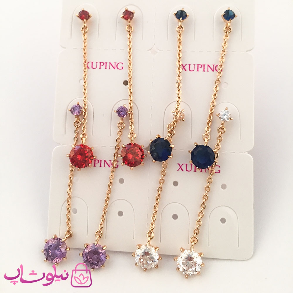 گوشواره زنانه رنگی ژوپینگ آویز بلند کد 2713
