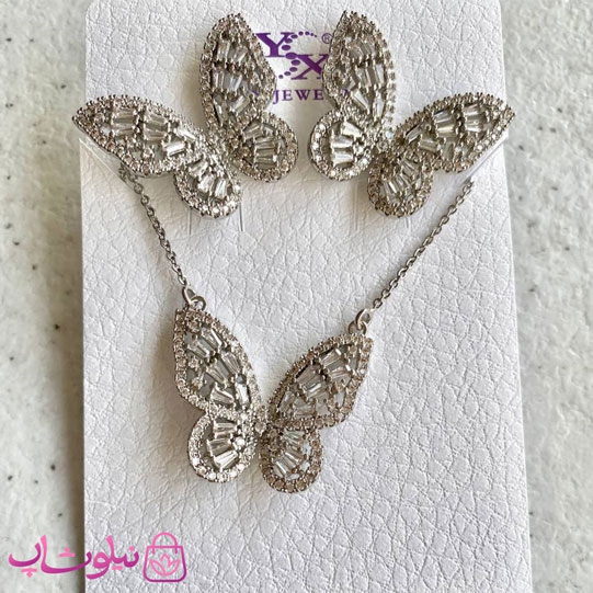 نیم ست دخترانه ysx طرح پروانه نقره ای