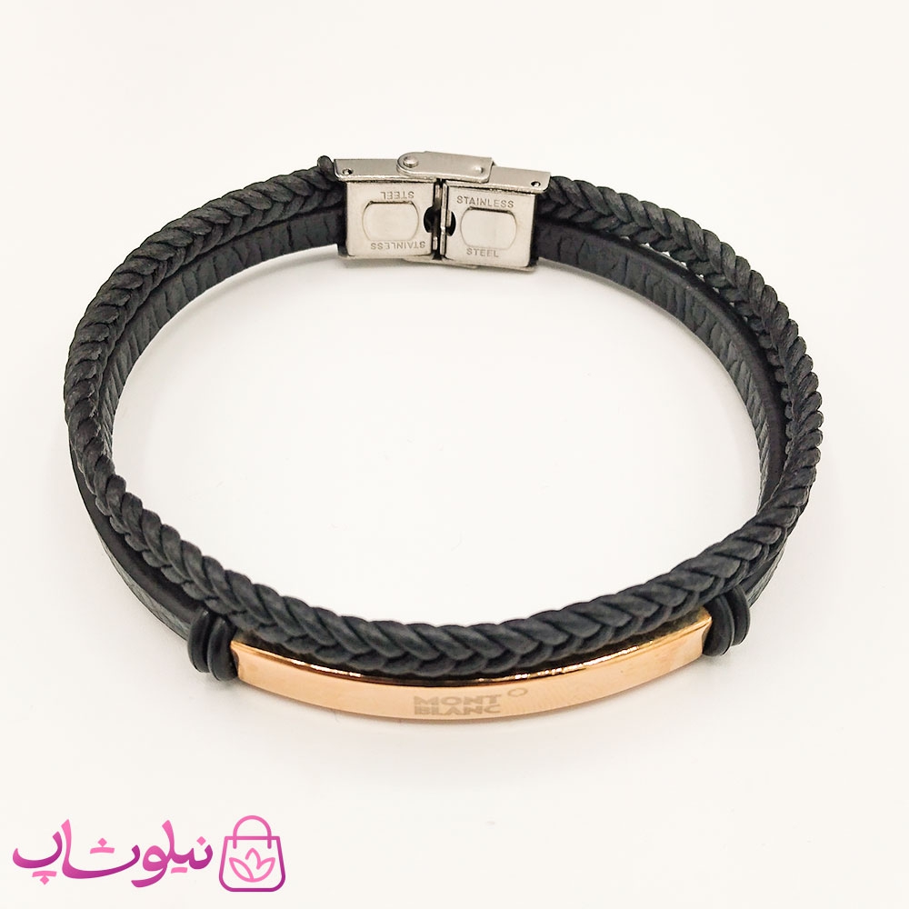 دستبند مردانه چرم و استیل مون بلان رزگلد مشکی