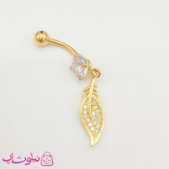 پیرسینگ ناف آویزدار طرح برگ طلایی