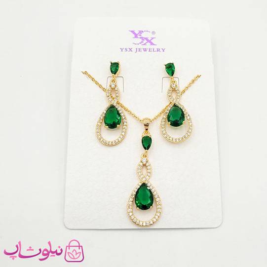 نیم ست زنانه YSX طلایی با نگین سبز کد 2981
