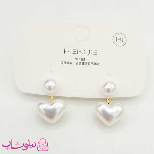 گوشواره زنانه میخی با طرح قلب مرواریدی