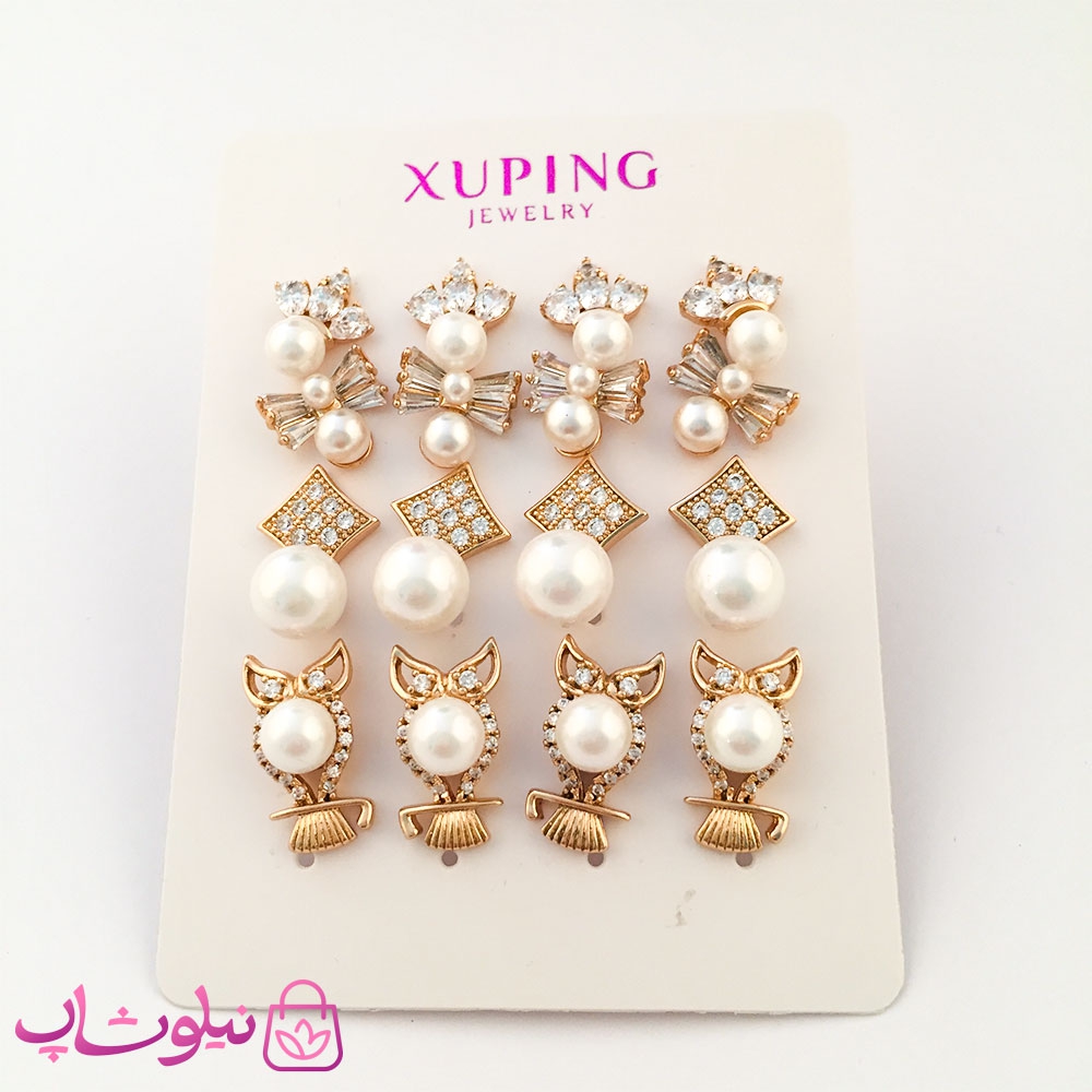 گوشواره زنانه ژوپینگ میخی طرح مرواریدی کد 1940