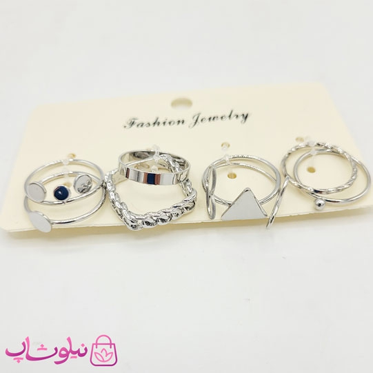 ست انگشتر و بند انگشتی نقره ای 8 عددی