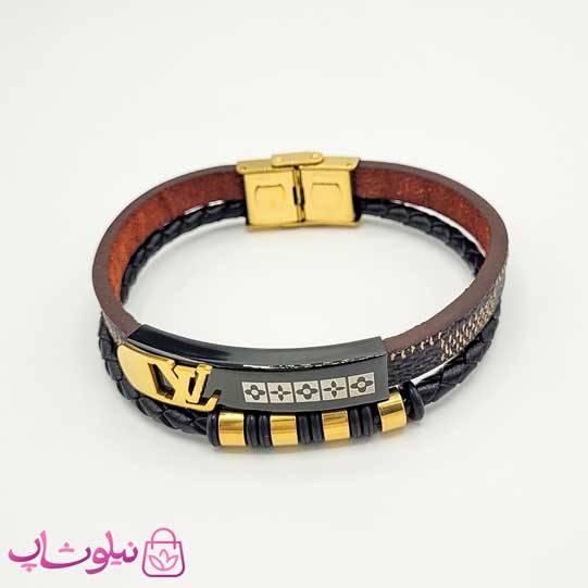 دستبند مردانه چرم و استیل مدل لویی ویتون