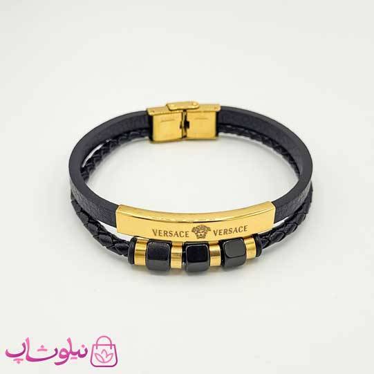 دستبند مردانه چرم و استیل مدل ورساچه