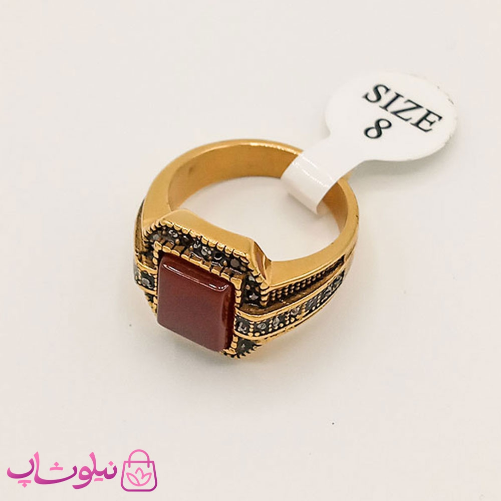 انگشتر مردانه استیل با سنگ قهوه ای