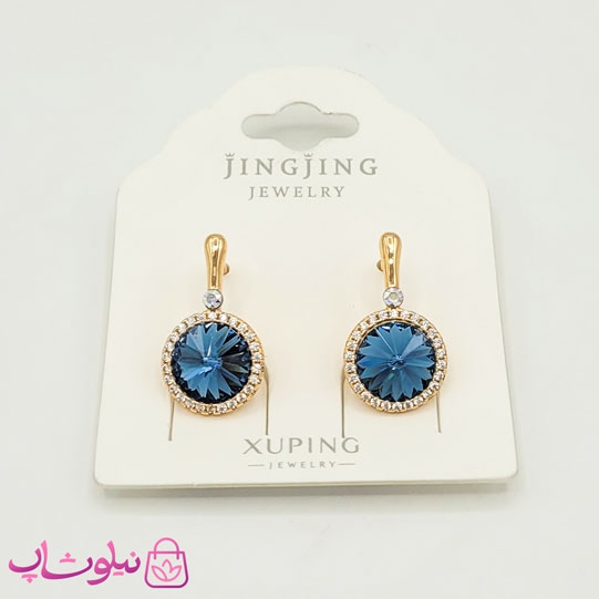 گوشواره زنانه ژوپینگ با سواروسکی آبی تیره کد 2091-2