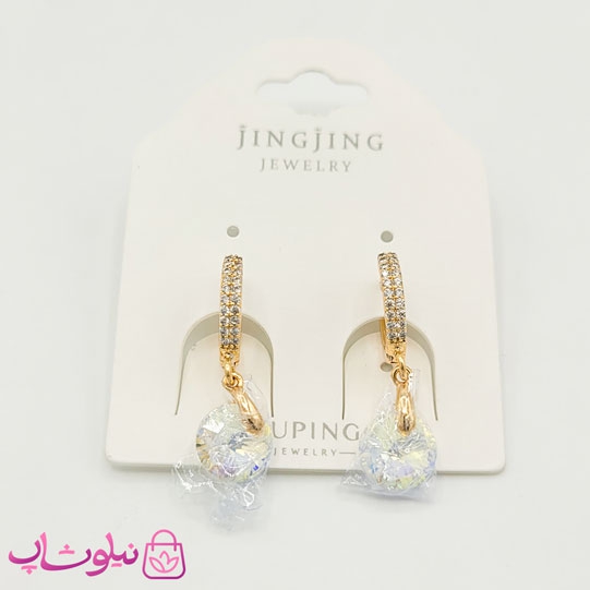 گوشواره زنانه ژوپینگ طلایی با آویز سفید کد 1791
