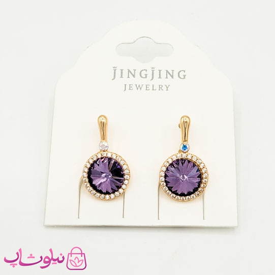 گوشواره زنانه ژوپینگ با سواروسکی بنفش کد 2091-3
