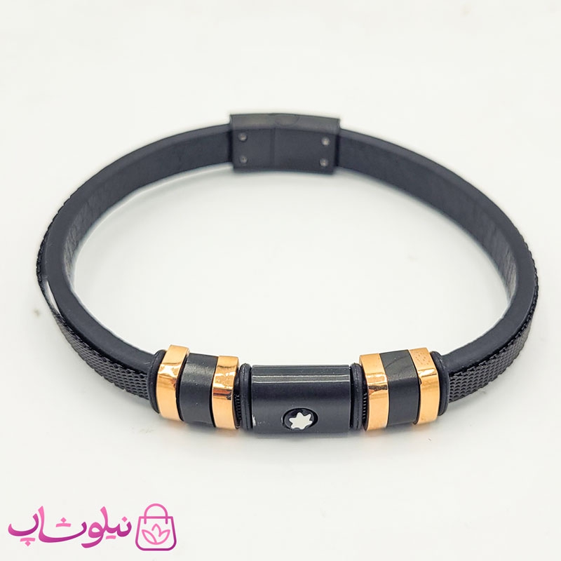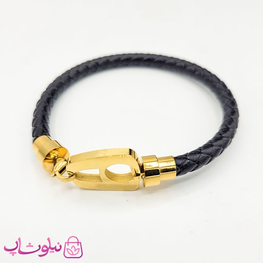 دستبند مردانه نیمانی چرم و استیل مشکی