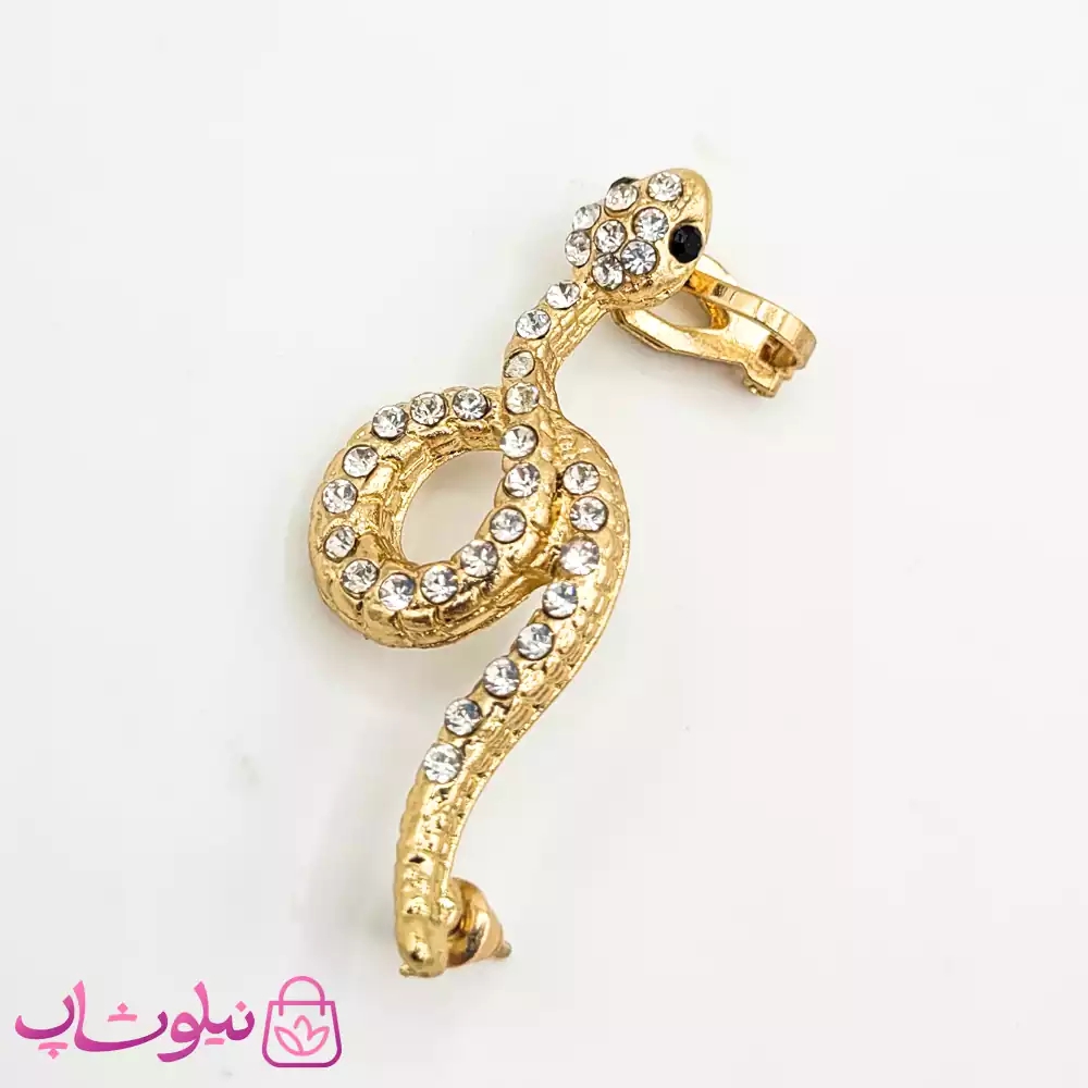 گوشواره لاله گوش نگین دار طرح مار طلایی