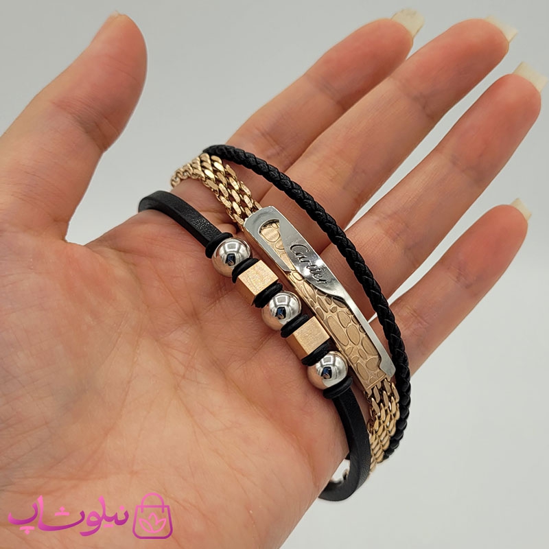 نیم ست مردانه استیل طرح کارتیه طلایی