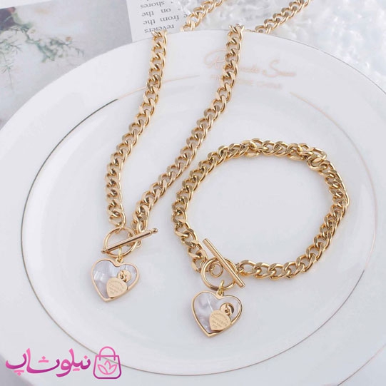 ست دستبند و گردنبند زنانه طرح قلب سفید