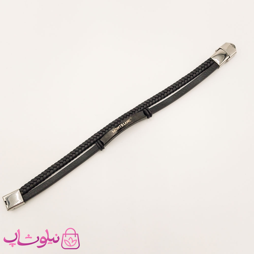 دستبند مردانه چرم و استیل مون بلان مشکی