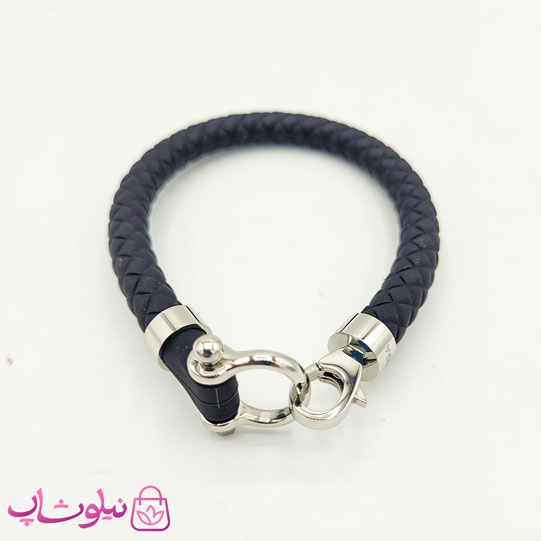 دستبند امگا رابر مشکی با قفل نقره ای