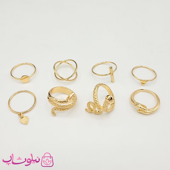 پک انگشتر دخترانه طرح مار طلایی 8 عددی