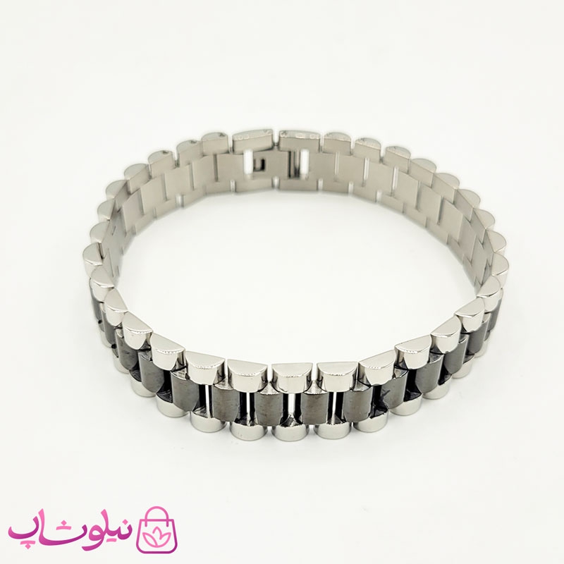 دستبند مردانه رولکس نقره ای مشکی کد 2563