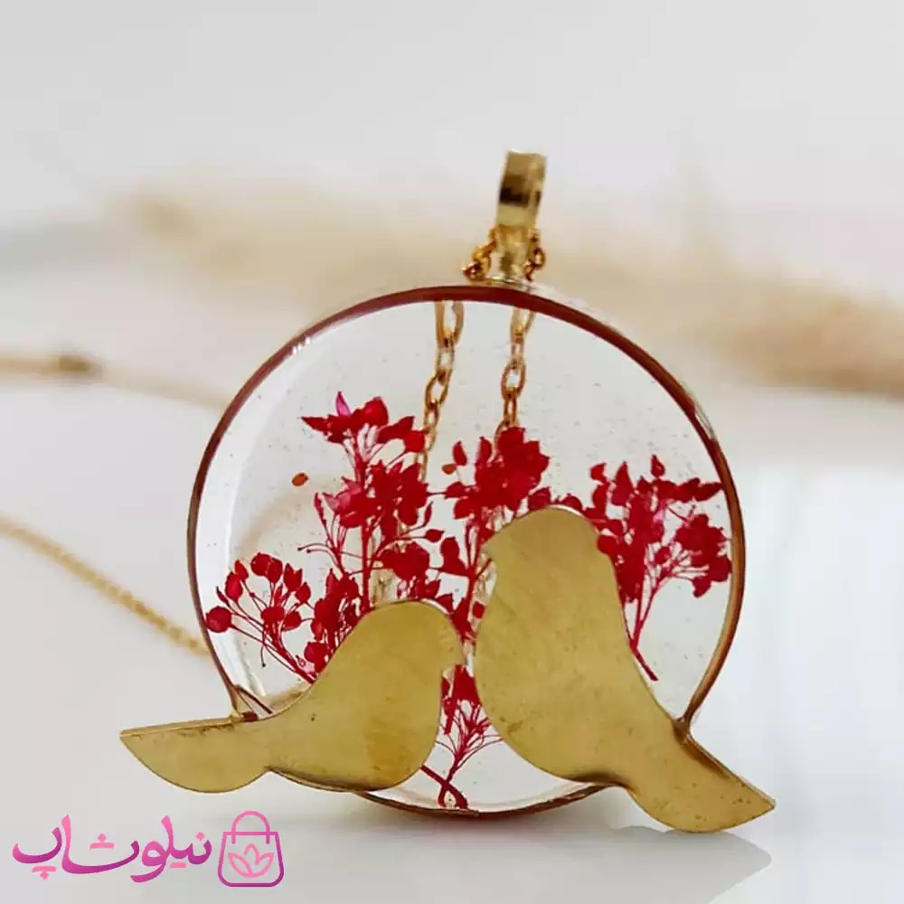 گردنبند دخترانه رزینی طرح دو پرنده