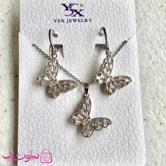 ست گردنبند و گوشواره دخترانه YSX پروانه نقره ای