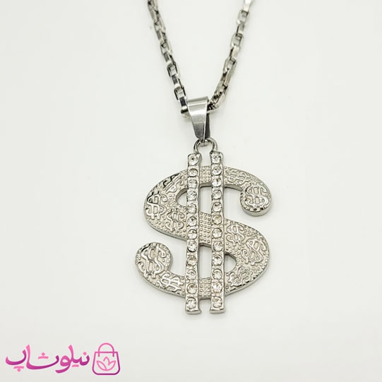 گردنبند پسرانه مدل دلار نقره ای کد 1191
