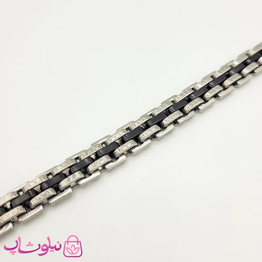 دستبند مردانه نقره ای مشکی استیل کد 145
