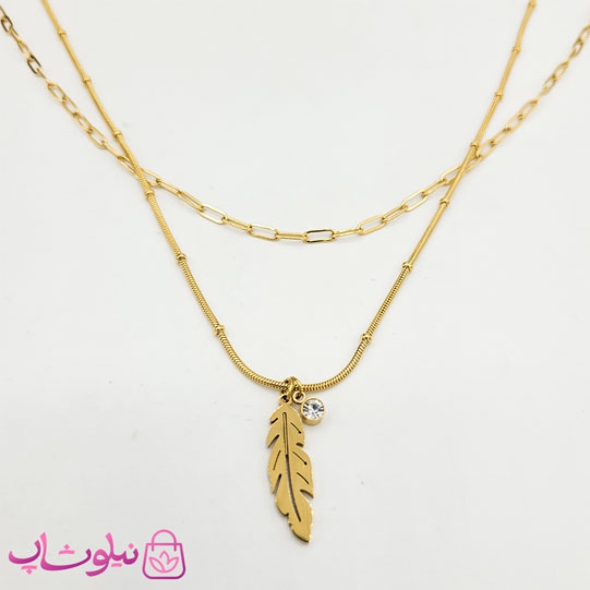 گردنبند دخترانه دولاین استیل طرح برگ کد 1582