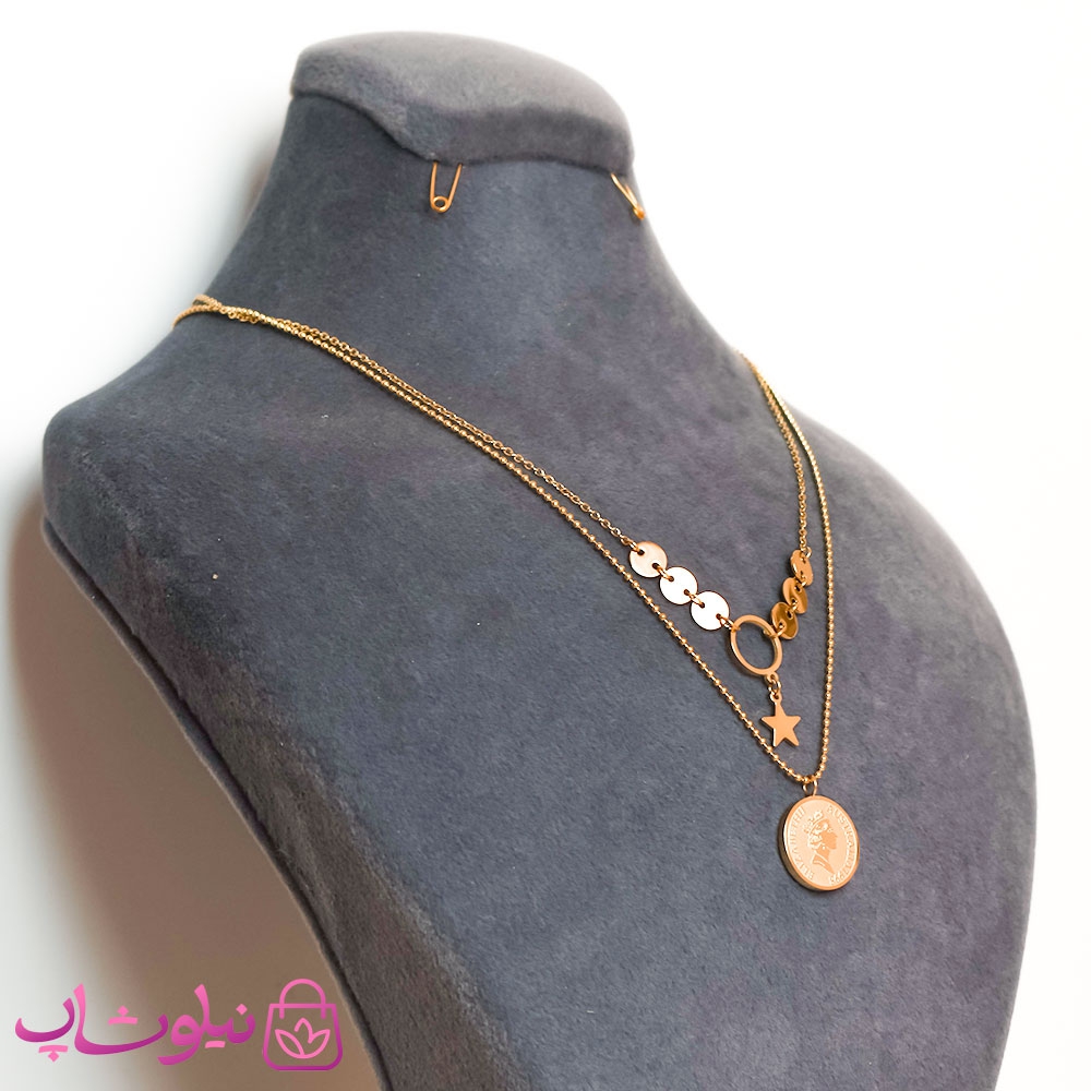 گردنبند زنانه استیل دو ردیفه طرح الیزابت دوم کد 302-2