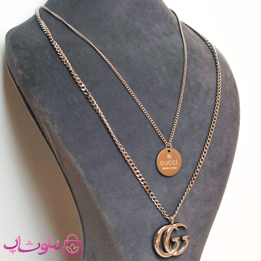 گردنبند زنانه استیل دو ردیفه طرح گوچی کد 302