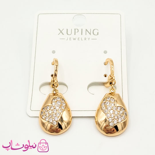 گوشواره آویز ژوپینگ مدل اشک با نگین قلب کد 1391