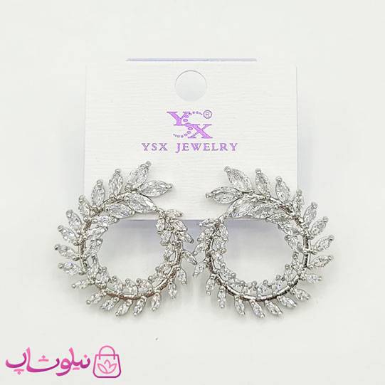 گوشواره میخی زنانه YSX مجلسی نگیندار نقره ای