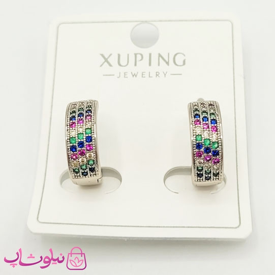 گوشواره حلقه ای ژوپینگ با نگینهای رنگی کد 1531