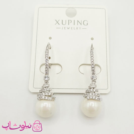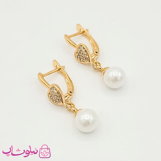 گوشواره ژوپینگ قلبی با آویز مروارید کد 129-2