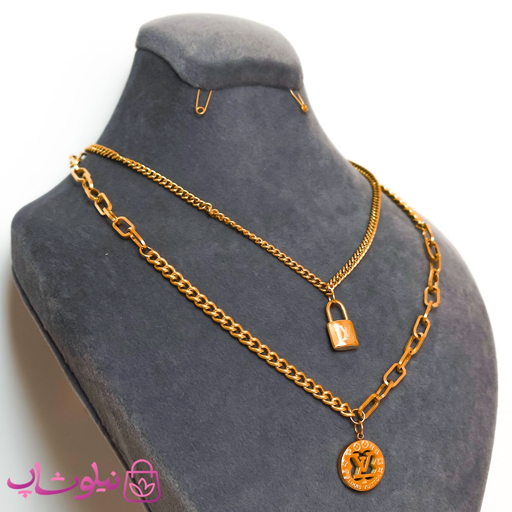 گردنبند زنانه استیل دو ردیفه طرح لویی ویتون