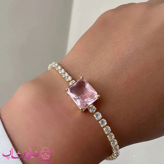 دستبند دخترانه مدل تنیسی با نگین صورتی