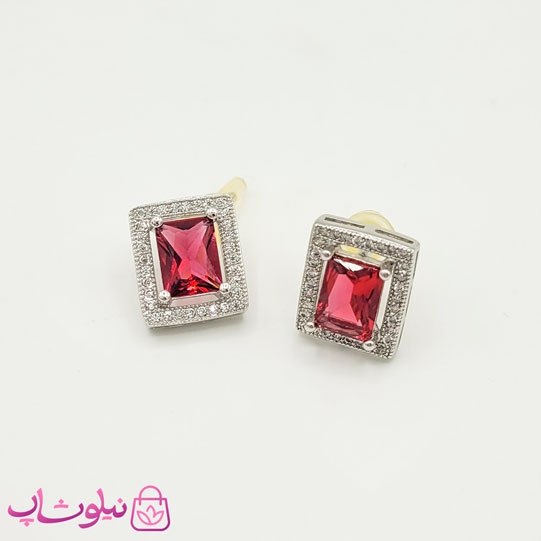 گوشواره میخی ژوپینگ مستطیلی نگین قرمز کد 153