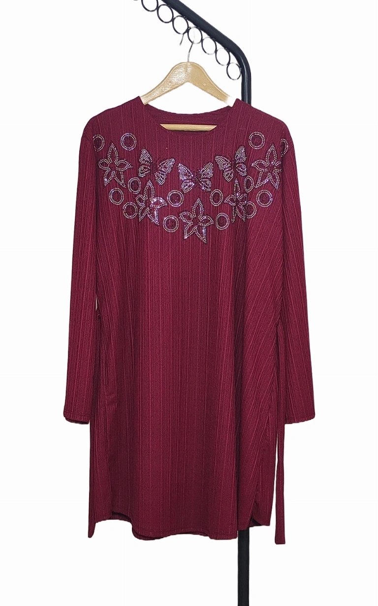 تونیک زنانه آستین سه ربع منجوق دوزی شده