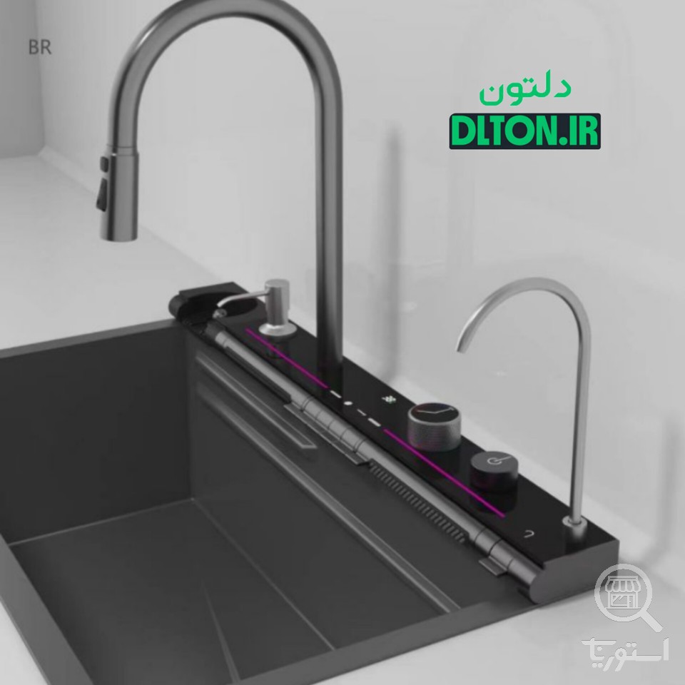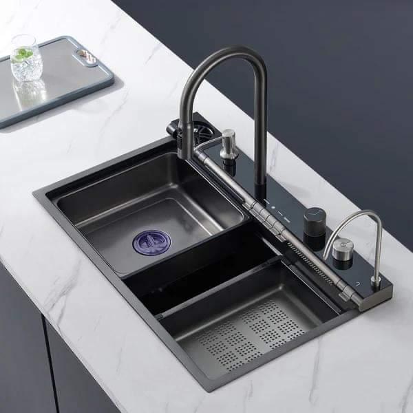 سینک ظرفشویی آبشاری مشکی مدل پیانویی 7 کلید گرید A