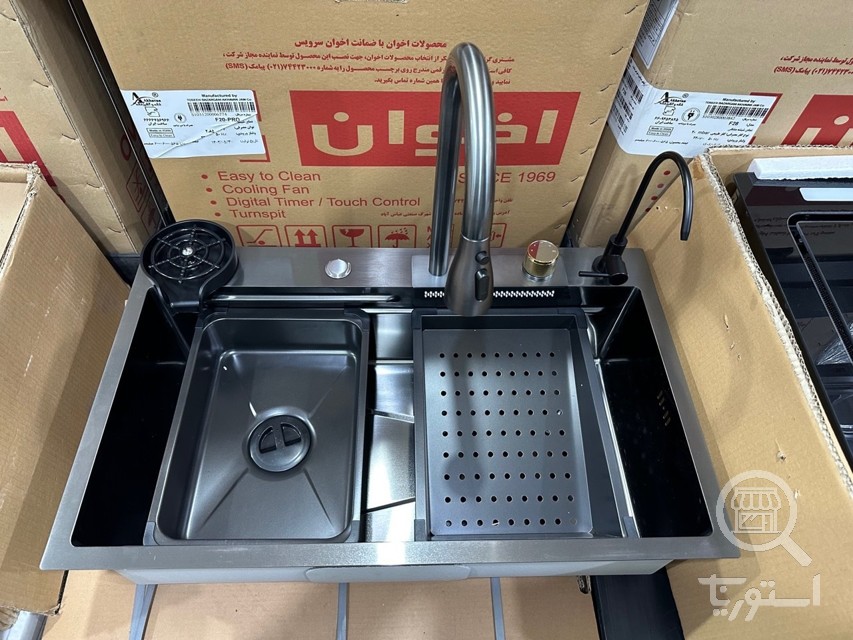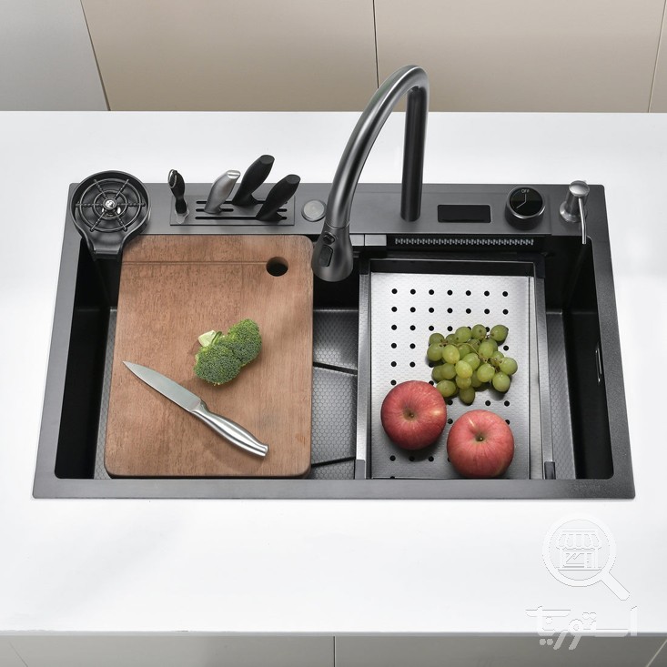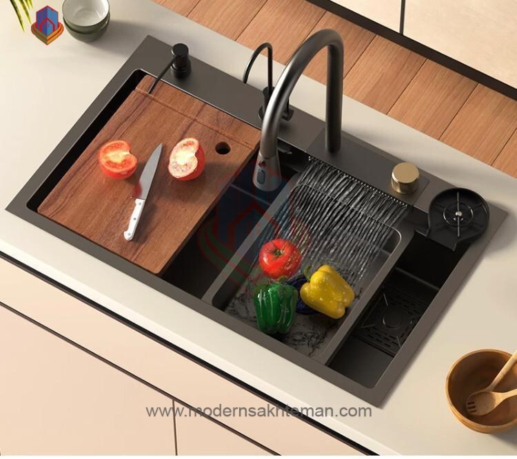 سینک ظرفشویی آبشاری دودی با شیر کفی صاف