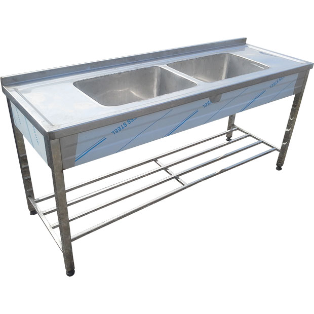 سینک استیل دو لگنه آشپزخانه صنعتی با پایه پاتروکی