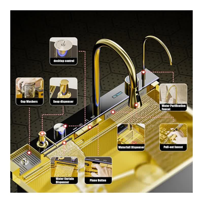 سینک ظرفشویی آبشاری مشکی مدل پیانویی 3 کلید سفید گرید A