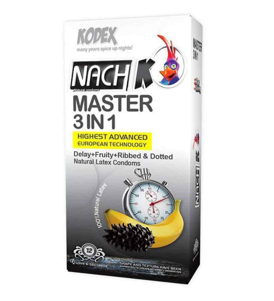 کاندوم 12 عددی تاخیری خاردار مدل مستر 3 در 1 ناچ کدکس