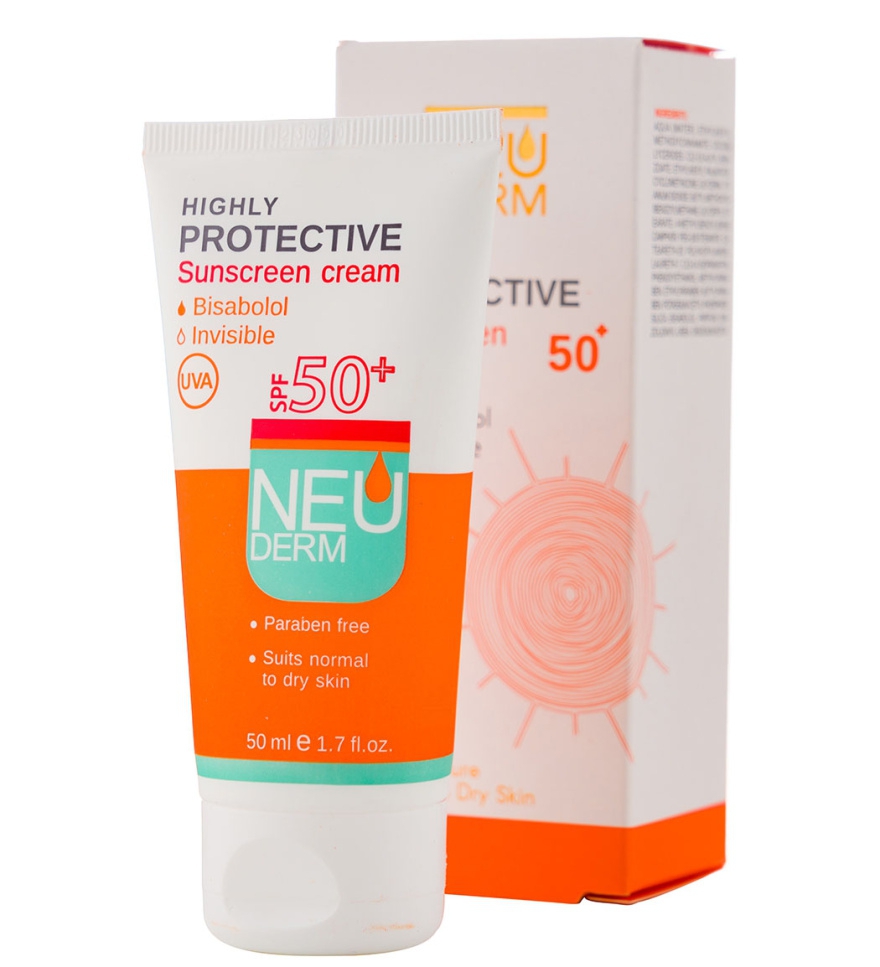 کرم ضد آفتاب فاقد رنگ اس پی اف +50 برای پوستهای نرمال و خشک 50میل نئودرم