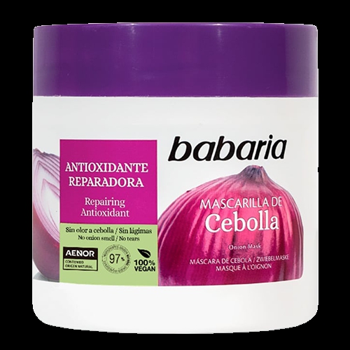 ماسک ترمیم کننده و تقویت کننده مو باباریا babaria مدل Cebolla مناسب موهای رنگ شده با عصاره پیاز حجم 400 میل