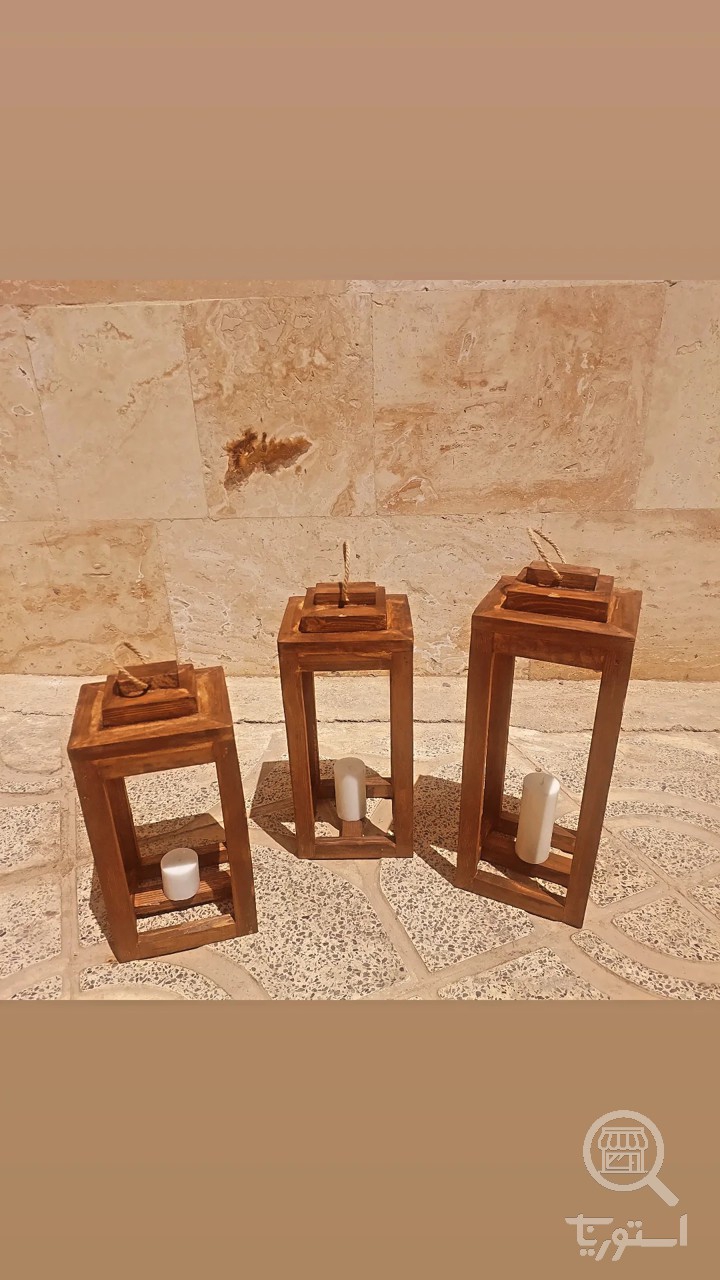 فانوس چوبی کنارسالنی سه تایی