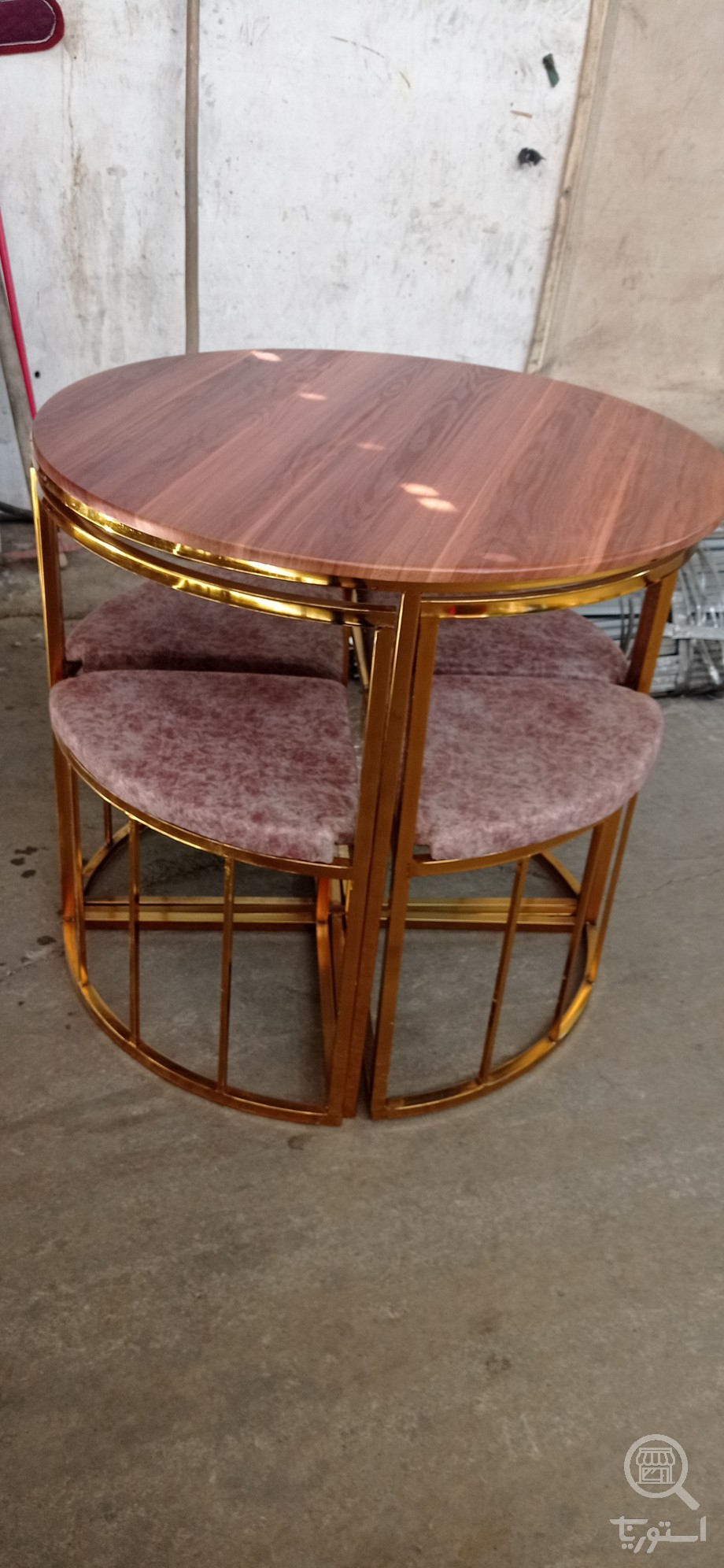 میزوصندلی ناهارخوری مدل کمجافلزی 4نفره دردورنگ کروم وانتیک 7روزکاری