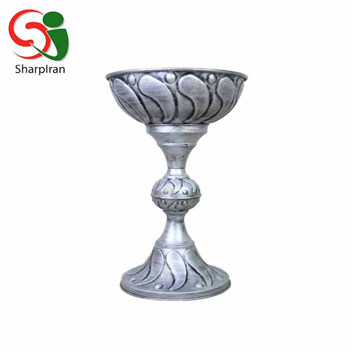 جام رومیزی پتینه مدل اشکی رنگ نقره ای