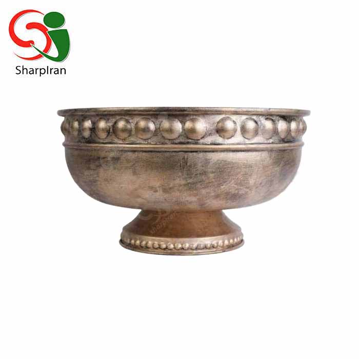 جام پایه دار پتینه مدل دکمه ای درشت رنگ مسی