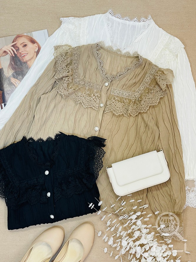 شومیز مانتویی آستین پفی