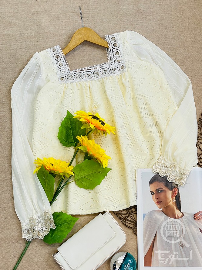 بلوز بافت آستین گلدوزی زنانه
